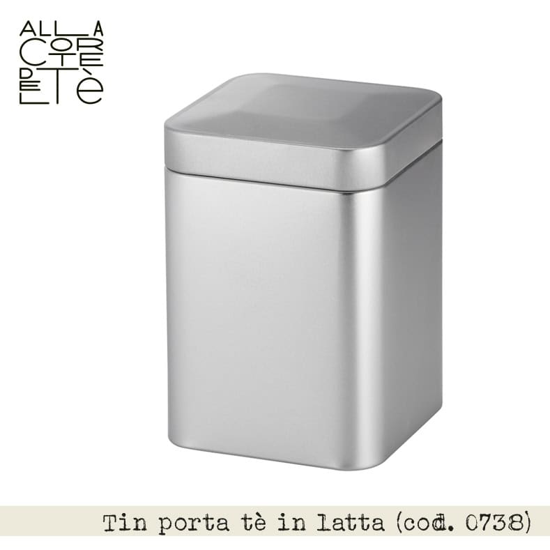 Tin in latta porta tè dimensioni cm 8,9 x 8,9 x 13, ideale per la conservazione del tè, infusi o tisane, al riparo da luce, aria e umidità. Capacità indicativa di 200 gr (dipende dal volume delle foglie).